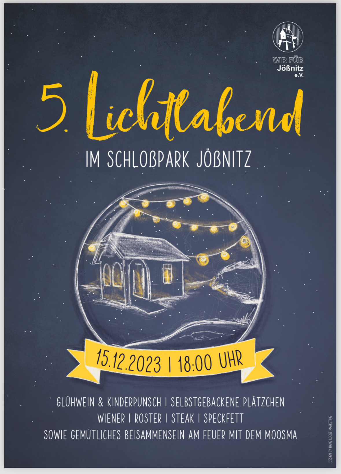 Der Verein „Wir für Jößnitz e.V.“ lädt nunmehr zu seinem 5. Lichtlabend im Schloßpark in Jößnitz ein.