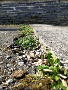 Eine gefährliche Kante ist durch die Abnutzung des Schulhofbodens entstanden.